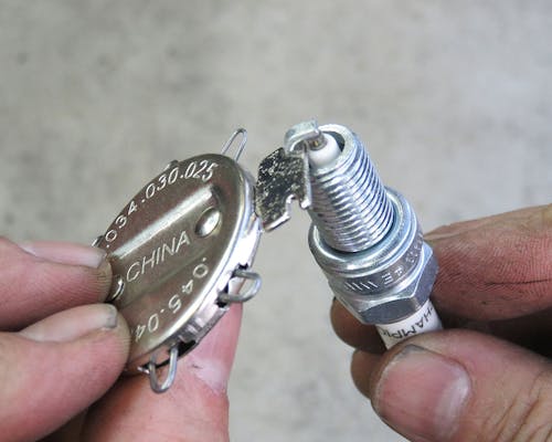 スパークプラグのギャップ調整ツールです。 ツーリングなどの出先でも役立つので、予備の装備として スパークプラグと一緒に携帯もおススメです。 |
