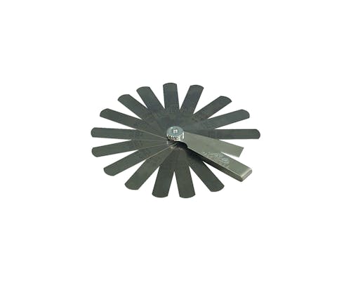 15枚のスチール製ブレードからなるギャップゲージです。 インチ・ミリの両方に対応しています。 インチの記載があるので、外車のサービスマニュアルから直接数値を参照できます。 2インチの長さの定規も付属しています。 |