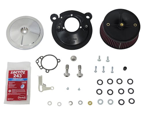 高性能吸気システムを搭載した、S&SのNEWラインナップ、 ステルスエアークリーナーキットです。 ドレスアップもさることながら、吸気効率の向上によりパワーアップも見込めます! |