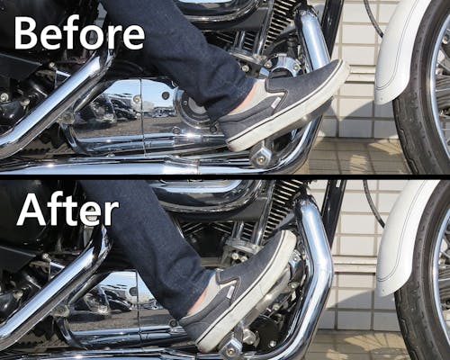 遠い位置にあるフォワードコントロールを約2インチ手前に移動するキットです。 足周りの操作性の向上はもちろん、足のつっぱりが改善しますので、 快適なライディングが期待出来ます。 コントロールサポート、ブレーキとシフトレバーはノーマルの物を流用して装着します。 |