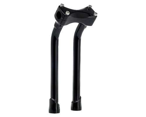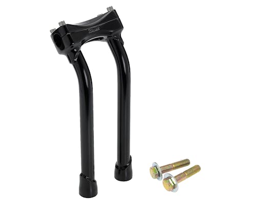 外径1インチ、厚み約3mmの4130クロモリチューブをTIG溶接し、 さらに1つ1つハンドポリッシュにて下処理を施してあります。 サテンブラック仕上げで、溶接模様も非常にきれいなライザーです! トップクランプのボルト位置には、純正のメーターブラケットが使用できます。 ライザーが中空になっているので、加工次第では配線の中通しも可能です。 旧品番:MP-012-HD-BK |