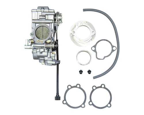 レーシングキャブレターの最高峰、ケーヒンのFCRキットになります。 特徴としては、スロットルワイヤーで直接バルブを開くことから、 強制開閉キャブレターといわれ、スロットルレスポンスが非常に良く爽快です。 加えて可変ベンチュリー構造により混合気を作るうえで大事な負圧を保ち、 良い吸入流速を作り出し低速から高速まで安定してなめらかなハイパワーを作り出します。 上下に摺動するフラット形状のスライドバルブには、 ベアリングが搭載された滑車が装着されており、抵抗を極力減らし、 張りつきを防止しリニアに開閉します。 アイドリングでカコカコ・・というメカ音と、 ビュッ!と吹け上がる吸気音にも特徴があり迫力があります。 世界中のレースやチューンナップ業界で自動車・オートバイ問わず愛用されております。 ハーレーにおいてもエンジンの性格がレーシーに変わります! また、付属の専用アダプターを用いる事で、 CVキャブレターにマウント可能な穴位置のエアクリーナーの装着も可能となります! |