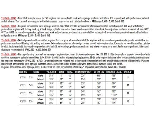 FEULING社製のハイパフォーマンスエンジンパーツです。 リーパーと名づけられたカムが更なるパフォーマンスを引き出します。 ボルトイン仕様なので、基本的にヘッドやロッカースプリングの変更が必要ありません。 Intake: .518 Valve Lift, 4 Open, 42 Close, 226 Duration @ 53, .099 lift @ TDC, .109 Lobe Centerline Exhaust : .528 Valve Lift, 51 Open, 5 Close, 236 Duration @ 53, .112 lift @ TDC, 113 Lobe Centerline RPM range 1650 - 5500. Grind: 518 |