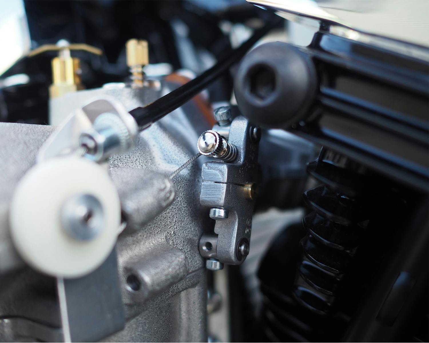 数少ないS&S Bキャブ用アイドルスクリューです。 ネジ部分は古いネジをイメージし、ルックスに拘りました。 これで小さいマイナスドライバーとはおさらばできます。 |