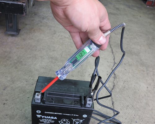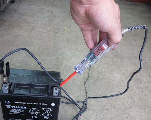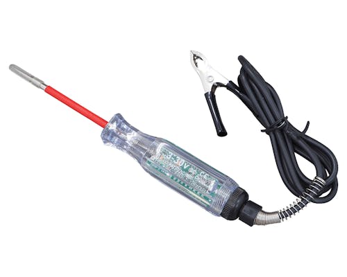 配線の被覆を剥くことなく、手軽に電圧を測れるサーキットテスターです。 先端が針になっており、配線に直接刺して導通を確認します。 液晶画面には3-30Vの範囲で電圧を表示することが出来ます。 また極性を確認出来るLEDも内蔵している為、正しい極性の場合は 赤色点灯、逆の場合は緑色点灯でお知らせしてくれます。 発電系統の点検や電装系の故障修理に役立つスグレモノです。 |