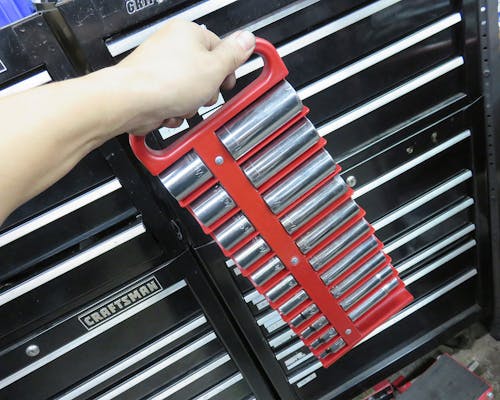 マグネットの付いているソケットホルダーです。 持ち運びに適しており、強力な磁石でソケットを落とす事はありません。 ソケットを露出させたまま収納する事で、サイズを容易に識別する事が出来ます。 裏側にはラバーフィートがあり、ツールボックスにキズを付ける事もございません。 |