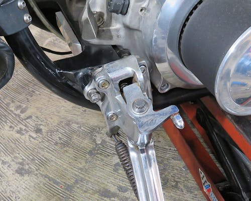 フォワードコントロール、ステップボートを使用している車輌で シフターブラケット、フットクラッチのブラケットをミッドコントロール等の 位置へ変更された際に必須アイテムです。 また、ショベルヘッドでシフターブラケット部にあるレギュレターの 位置を変更された際にもクランクケース周りをすっきりさせることが出来ます。 キックスタンドマウントプレートとキックスタンドブラケットを一緒にボルトで固定します。 |