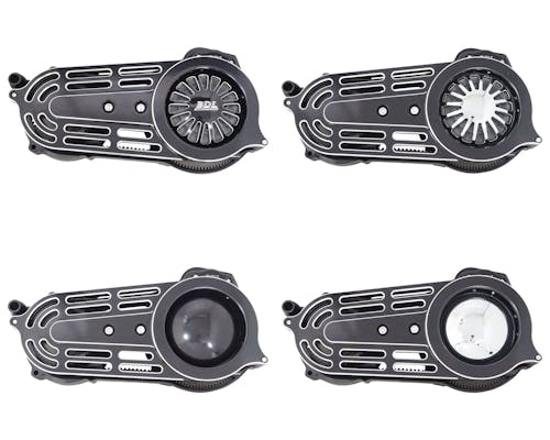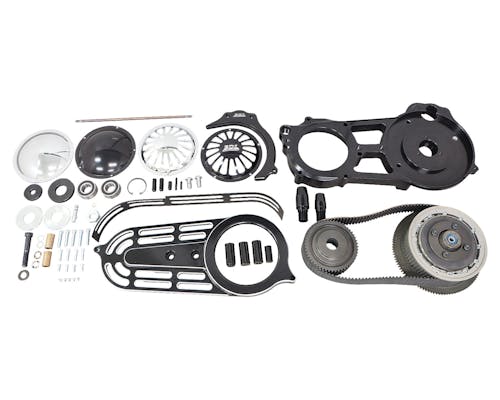 エンジンからの回転動力を無駄なく、かつスムーズに伝達します。 専用設計のスターターリングギアはピニオンギアとの相性抜群で、スターターへの 負担を軽減。もちろん、特許取得済みのロックアップクラッチシステムと専用 プレッシャープレートで、クラッチの切れる・繋がる動作をより滑らかに操作できます。 4カバー付きのベルトキットはダービーカバーのデザインが全部で4種類から 自由に選んで付け替えることができ、お手軽にイメチェンを楽しめます! |