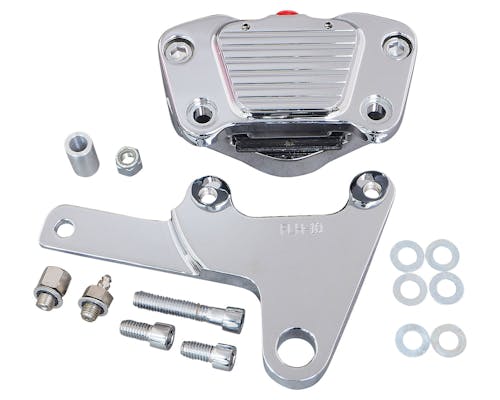 ハーレー用のキャリパーとして昔から馴染みのあるGMA製カスタムビレットキャリパー。 ハーレーの超重量に対し必要十分な制動力を発揮します。 シンプルなデザインでどんなカスタム車にも合わせやすいのも魅力です。 専用ブラケットによるダイレクトボルトオン設計で強度も申し分なしです。 適合ブレーキパッド:GMA A |