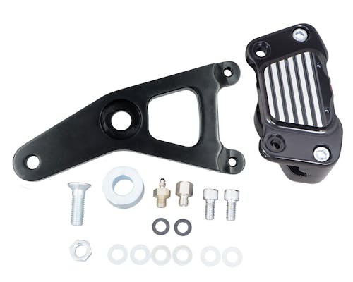 ハーレー用のキャリパーとして昔から馴染みのあるGMA製カスタムビレットキャリパー。 ハーレーの超重量に対し必要十分な制動力を発揮します。 シンプルなデザインでどんなカスタム車にも合わせやすいのも魅力です。 専用ブラケットによるダイレクトボルトオン設計で強度も申し分なしです。 適合ブレーキパッド:GMA A |