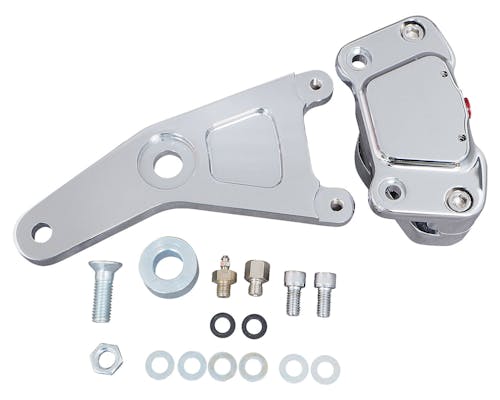 ハーレー用のキャリパーとして昔から馴染みのあるGMA製カスタムビレットキャリパー。 ハーレーの超重量に対し必要十分な制動力を発揮します。 シンプルなデザインでどんなカスタム車にも合わせやすいのも魅力です。 専用ブラケットによるダイレクトボルトオン設計で強度も申し分なしです。 適合ブレーキパッド:GMA A |