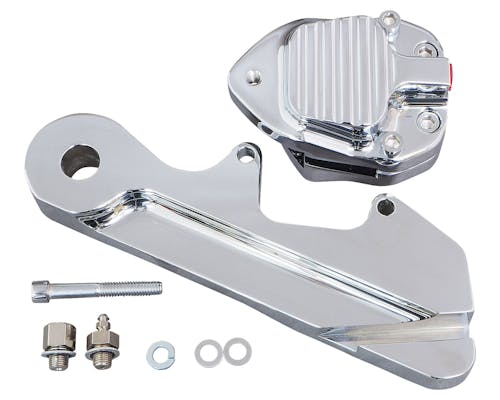 ハーレー用のキャリパーとして昔から馴染みのあるGMA製カスタムビレットキャリパー。 ハーレーの超重量に対し必要十分な制動力を発揮します。 シンプルなデザインでどんなカスタム車にも合わせやすいのも魅力です。 専用ブラケットによるダイレクトボルトオン設計で強度も申し分なしです。 適合ブレーキパッド:GMA B |