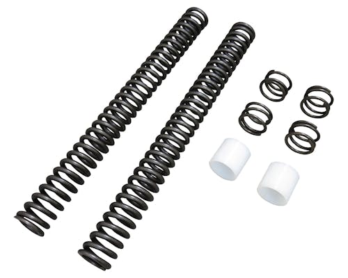フロントフォーク用のロワリングキットです。 純正フォークはそのままに、 中のスプリングを交換する事でローダウンが可能になります。 足付きの向上はもちろん、車体を取り回す際にも違いが表れます。 |