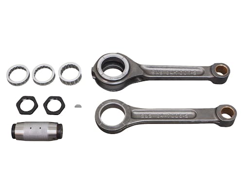 S&S製のヘビーデューティー仕様コンロッドアッセンブリーです。 熱処理されたスチールで鋳造されたロッドは純正の強度を凌ぐ特徴があります。 クランクピンに空けられた2穴とロッドの4つのスロットが油通りを円滑にし、 スムーズな動作を可能とします。 Made in USA. |
