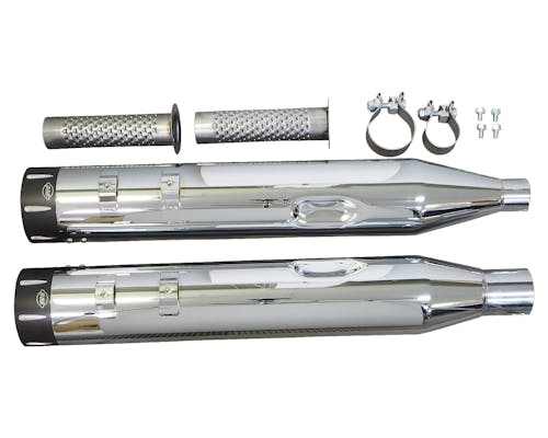 ハーレー用チューンアップメーカーの代表格、S&Sがリリースするスリップオンマフラーです。 極太の4.5in径を持つMk45シリーズはステンレスとファイバーグラスをパッキングする事で 深みのあるサウンドとトルクを生み出します。 同メーカーのキャブレターやエアクリーナーと併用することによって エンジンが持つ本来の性能を100%引き出します。 エンドのカラーをチェンジしてコントラスト変化を楽しむのもアリです。 |