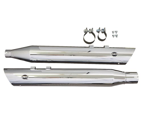 ハーレー用チューンアップメーカーの代表格、S&Sがリリースするスリップオンマフラーです。 純正のエキパイに対応しているので、手軽にパワーアップが楽しめます。 同メーカーのキャブレターやエアクリーナーと併用することによって 本来の性能を100%引き出します。 |