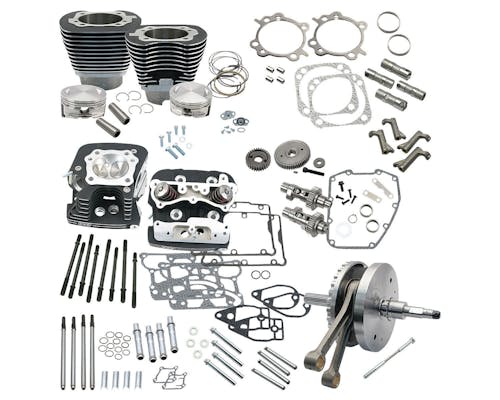 ストックのエンジンをベースに、124cuiで圧縮比11:1の、 モンスターエンジンへと変貌させる、S&Sホットセットアップキットです。 4-1/8inボアピストンとパウダーリンクル仕上げのシリンダー、 ヘビーデューティコンロッドに4-5/8ストローク仕様の3ピースフライホイール。 S&Sが誇る「SuperStock」91ccシリンダーヘッド、 プレミアム油圧タペットにクロモリ鋼のアジャスタブルプッシュロッド、 11:1の高圧縮に備え640イージースタートギアドライブカムシャフトも1セットに! 交換の際に最低限必要とされる、ガスケットやハードウェアも付属。 純正フレームとのクリアランスも干渉なしで収まるよう設計されており、 ヘッドはストックマニホールド(EFIボディ)に合うように、マシニングされているため、 純正のEFIスロットルボディを使用する事も出来ます。 同メーカーの大口径スロットルボディ・ハイパフォーマンスインジェクターや、 ハイフローエアクリーナーにパフォーマンスエキゾーストなどと併用することによって 本来の性能を100%引き出す事が出来ます! |