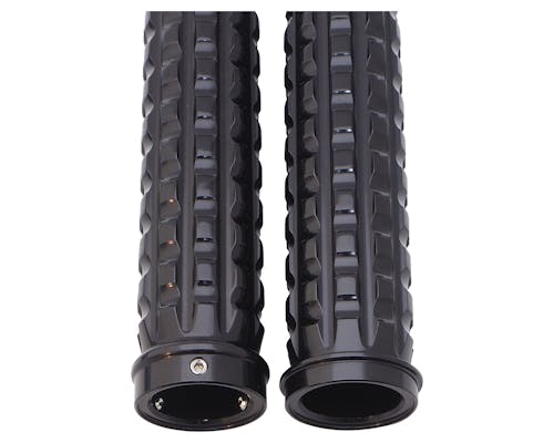 大きく溝のあるカスタムグリップです。 どんなカスタムにもぴったり! インナースロットルは必要ありません。 左側グリップはハンドルにかぶせてネジで固定するタイプです。 |