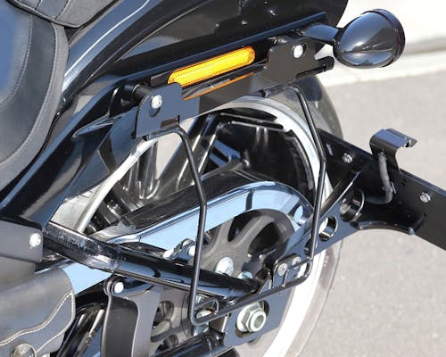 2018年ブレイクアウト専用、オールインワン設計!! これ一つでサドルバッグの装着、タイヤへの巻き込みを防止。 従来スライドレールとバッグサポートが別売りだったモノを 今回オールインワン一体型とした新設計なので、 本製品のみで安全にサドルバッグが取付出来ます。 大型バッグを取り付けた際のベルト紐固定ポートが四隅に空いているので取付が容易。 純正ホールドファストドッキングハードウェアキット (OEM#52300376/OEM#52300377)との併用取付けが可能。 |