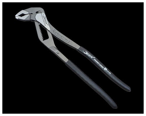 Deen製の250mm長ウォーターポンププライヤーです。 少ない握力で強力なトルクで掴めるという定番モデルです。 約3.5mm~41mmのパイプ径に対応する調整機構つき。 非対称のギザギザ形状は大きな対象物をしっかりくわえて力を逃がしません。 先端は一段細くシェイプされ、小さい物もつかみやすい工夫が施されています。 しっかりと握れるラバーグリップでフィット感も抜群です。 Made in Germany. |