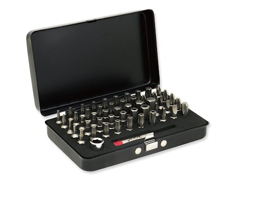 プラス +1・+2・+3・+4 マイナス -3・-4・-5.5 ポジドライブ +2・+3 トライアングル 2mm・3mm ヘックス 2mm・2.5mm・3mm・4mm・5mm・6mm・7mm・8mm ヘックス 3/32in・1/8in・5/32in・3/16in・7/32in・1/4in・5/16in トルクス T8・T9・T10・T15・T20・T25・T27・T30・T40 いじり止めトルクス TH10・TH15・TH20・TH25 |