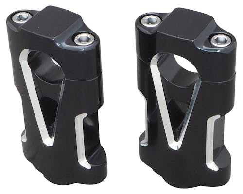 ※ハンドメイド製品となりますので、 ロットや素材によって形状や色味が若干異なる場合があります。 予めご了承ください。 ※1/2-13の粗目ボルトを使用している場合は、 別途1/2-20の細目ライザーボルトが必要となります。 2018年式以降のFXBB・FXBR・FXST レボリューションマックスモデルには対応しません。 |