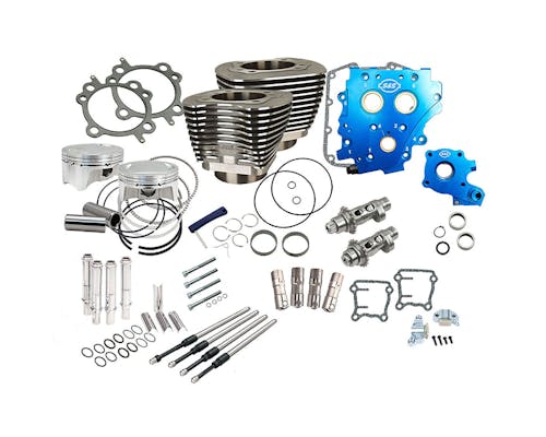 S&Sパフォーマンスより、ストックのエンジンを 110キュービックインチへとパワーアップさせるキットが、 この度リニューアルされて登場です! シリンダーは高精度な40000psi耐強度を誇る鋳鉄ライナーで作られ、 シリンダースリーブの素材を新たにスチールからダクタイル鋳鉄へと変更! 従来のシリンダーと比べ強度・放熱性がアップしております。 付属のピストンは軽量&高強度な鍛造成形。 スカートの形状を見直すことで、 メカニカルノイズを抑え、エンジンの寿命を延ばします。 専用設計の為、ボーリング等の加工は必要とせず、 ストックと外観イメージを変えることなくインストールが可能です。 更には585CEイージースタートカム&カムプレート、高性能オイルポンプも含まれ、 排気量UPに伴うオイルの供給不足の心配も無くなり、 内側からしっかりとパワーアップが可能です! さらなるホースパワーを求める車両にピッタリなキットです! |