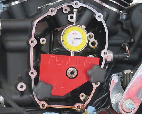 FEULING製の特殊工具です。 クランクシャフトの振れ測定と、 ギアドライブカム仕様のギアドライブのバックラッシュを測定する際に使用します。 |