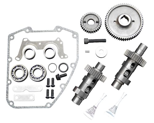 1999年~2006年までの5速ビックツイン(2006年ダイナには使用出来ません) 主に88~106cuiで圧縮比9:1~9.9:1のツーリングファミリー向け 2004年までの車両はハイリフトスプリングが必要です。 ※ギアドライブ専用のカムです。 |