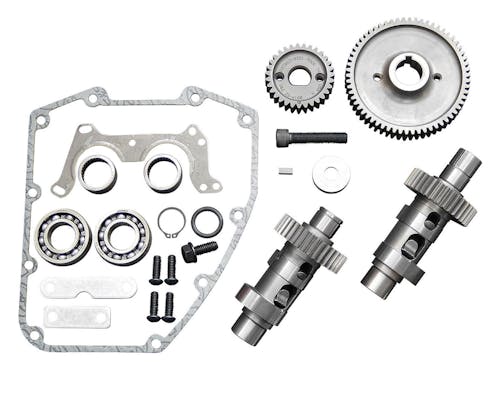 1999年~2006年までの5速ビックツイン(2006年ダイナには使用出来ません) 主に88~106cuiで圧縮比9:1~9.9:1のツーリングファミリー向け 2004年までの車両はハイリフトスプリングが必要です。 ※ギアドライブ専用のカムです。 |