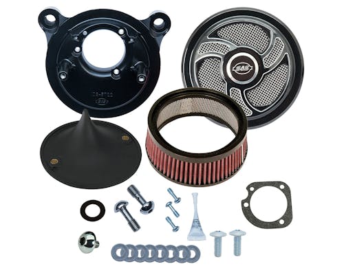 高性能吸気システムを搭載した、S&SのNEWラインナップ、 ステルスエアークリーナーキットです。 ドレスアップもさることながら、吸気効率の向上によりパワーアップも見込めます! |