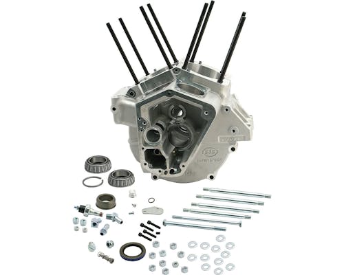 S&S製EVOエンジンのクランクケースです。 ケースは高強度を誇る鋳造アルミ合金で仕上げられると共に、 ベアリングやシャフト類も精密加工が施され、 シリンダーで生み出される動力を効率良く駆動系に伝えます。 ハイパフォーマンスリプレイス品としてご利用下さい。 |