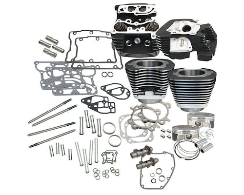 106""のビッグボアホットセットアップキットは、 装着時の機械加工やバランス調整は不要です。 また、エンジンをシャーシから取り外す必要もありません。 ブラックパウダーコート、S&S 585 Cチェーンドライブ、 Easy Startカムシャフト、S&Sクロモリスチール調整可能プッシュロッド、 S&S高性能タペット、および一連のCNCポートシリンダーヘッド。 シリンダーレングスはストックと同じ高さなので、 フレームクリアランスの問題はなく、ストックEFIスロットルボディが使用可能。 燃料や点火システムは含まれていません。 燃調を再構築する必要があります。 |