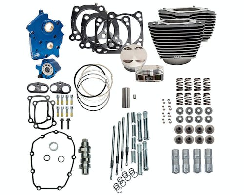 S&Sパフォーマンスより、M8ストックエンジンを 124キュービックインチへとパワーアップさせるキットが、 この度満を持して登場です! シリンダーは高精度な40000psi耐強度を誇る鋳鉄ライナーで作られ、 シリンダースリーブの素材にダクタイル鋳鉄を使用する事で、 従来のシリンダーと比べ強度・放熱性がアップしております。 付属のピストンは軽量&高強度な鍛造成形。 スカートの形状を見直すことで、 メカニカルノイズを抑え、エンジンの寿命を延ばします。 専用設計の為、ボーリング等の加工は必要とせず、 ストックと外観イメージを変えることなくインストールが可能です。 更にはチェーンカム&カムプレート、高性能オイルポンプも含まれ、 排気量UPに伴うオイルの供給不足の心配も無くなり、 内側からしっかりとパワーアップが可能です! さらなるホースパワーを求める車両にピッタリなキットです! |
