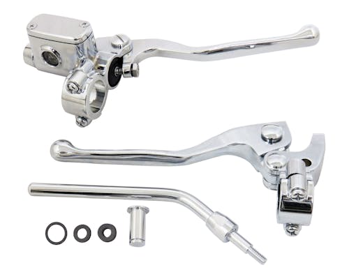 ハンドルまわりをすっきりとさせるカスタムに最適な、 シンプルなデザインを追及したハンドコントロールキットです。 オールドスクールチョッパーとの相性も抜群! 美しいクロームフィニッシュで、カスタムをさらに演出します。 ピボットと入れ替えてお使い頂ける専用のミラーステム付属! 4速&5速以降のクラッチケーブルに対応するピボットピン付属! シングルディスク車向けのマスターボアとなっております。 |