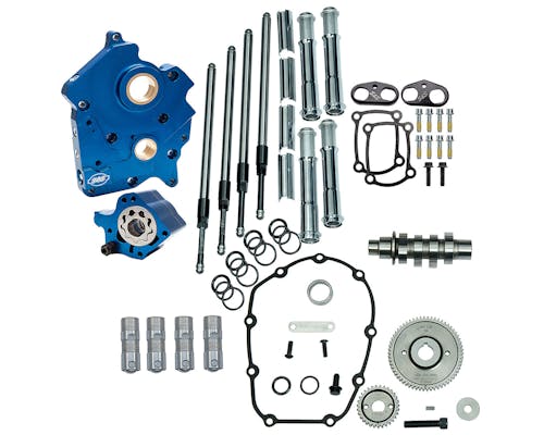 S&S製のカムチェストアップグレードキットです。 ギアドライブユニットに対応のハイカムシャフトと、 同社が誇る鍛造ビレットのカムプレートとオイルポンプに加え、 プレミアムパフォーマンスタペットやアジャスタブルプッシュロッド。 その他にもバルブスプリングやビレットタペットストッパーなど、 当キットにピッタリなS&Sの高精度チューニングパーツがオールインワンになったセットでリリース。 ギアドライブ化はチェーンドライブに比べて、大幅にフリクションロスが軽減。 レスポンスが向上し、ハイカムにより吸気効率アップで出力強化も望め、 オイリングシステムの変更により 油圧の安定強化も全てチューンされる内容となっております。 |