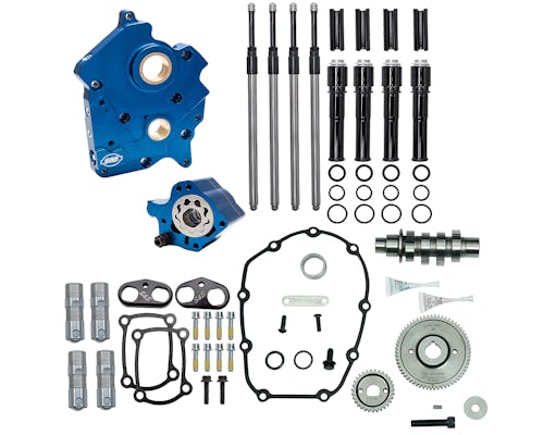 S&S製のカムチェストアップグレードキットです。 ギアドライブユニットに対応のハイカムシャフトと、 同社が誇る鍛造ビレットのカムプレートとオイルポンプに加え、 プレミアムパフォーマンスタペットやアジャスタブルプッシュロッド。 その他にもバルブスプリングやビレットタペットストッパーなど、 当キットにピッタリなS&Sの高精度チューニングパーツがオールインワンになったセットでリリース。 ギアドライブ化はチェーンドライブに比べて、大幅にフリクションロスが軽減。 レスポンスが向上し、ハイカムにより吸気効率アップで出力強化も望め、 オイリングシステムの変更により 油圧の安定強化も全てチューンされる内容となっております。 |