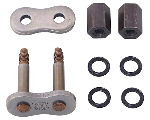 江沼チェーンのNXリングシールチェーン用のスクリュージョイントです。 チェーンを詰めるときなどの連結にお役立て下さい。 EKスクリュージョイントは長年の経験を生かし、 ジョイントの取り付けミスを防ぐタイプにモデルチェンジしました。 カシメをするための専用工具が要らず、 必要なのは10mmスパナとペンチのみです。 まさに「Do It Yourself」にうってつけのジョイントです。 |