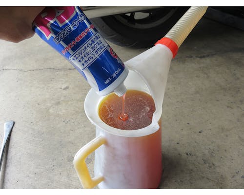 本品を直接オイルタンク等に注入しないで下さい。 オイル交換時、本品とオイルをよく混ぜ合わせてから 車両にオイルを注入してください。 |