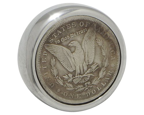アルミ材を削り磨き出しビンテージテイストのコインを埋め込んであるシフトノブです。 ハンドポリッシュにより全体的に優しいアールが掛かっています。 デザインソースとしてよく用いられるLIBERTYデザインのコインです。 全てMALCOM SUPPLY ファクトリーにてハンドメイドされています。 Made in Tokyo. |
