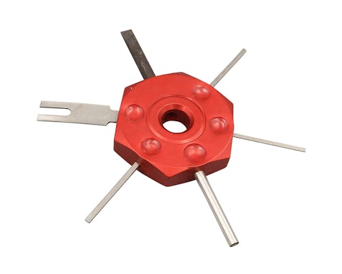 カプラーターミナルから配線を取り外すのに便利なツールです。 適切なサイズのスロットを選んで、ターミナルに差し込むだけで 内側からツメのロックが外れ、ターミナル本体や配線を傷つけることなく 簡単に配線が取り外せます。 主にGM車用ですが、ハーレーにも使用可能! |
