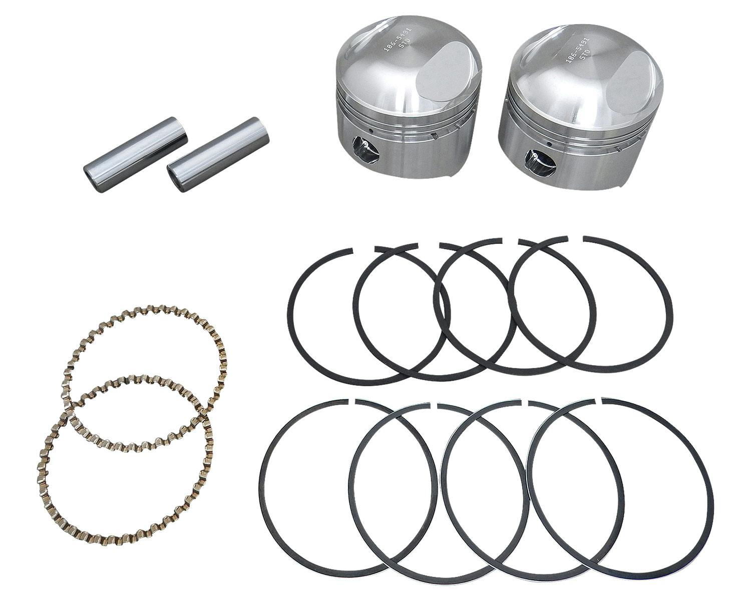 ストックのヘッドで8:1の圧縮を生成する鍛造ピストンです。 鍛造の高強度ピストンは細部までマシニングがとても美しく、 ピストンリング溝からオイルホール、ピストンピンからスカートまで、 S&Sが誇る技術精度のすべてが注ぎ込まれております。 軽くて高強度。エンジン内部の重要部分でもあるピストンに、 S&Sの技術を全てをフィードバックさせたといっても良いハイラインナップです。 |