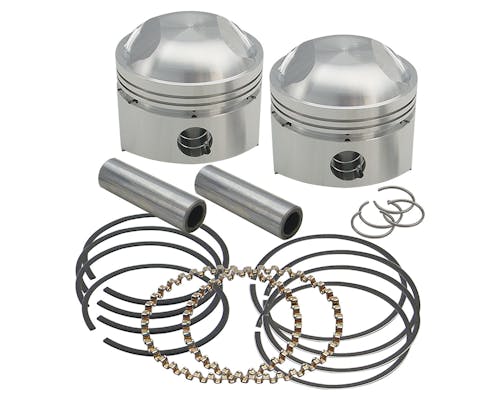 ストックのヘッドで8:1の圧縮を生成する鍛造ピストンです。 鍛造の高強度ピストンは細部までマシニングがとても美しく、 ピストンリング溝からオイルホール、ピストンピンからスカートまで、 S&Sが誇る技術精度のすべてが注ぎ込まれております。 軽くて高強度。エンジン内部の重要部分でもあるピストンに、 S&Sの技術を全てをフィードバックさせたといっても良いハイラインナップです。 |