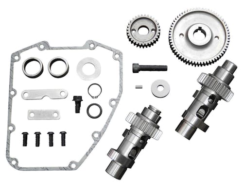 S&S製のギアドライブカムシャフトキットです。 ギアドライブはチェーンドライブに比べて、 大幅にフリクションロスが軽減し、レスポンスが向上します。 「イージースタートカム」は、クランキング始動時の負担を軽減する為の機構を搭載した ユニークなカムです。 セルスタート時はバルブの開く時間をコントロールして圧縮を抜く為 セルモーターに負担がかからず、今まで重かったクランキングも 驚くほど軽快に回るようになります。 エンジン始動後は通常のカムとして動作するようになっています。 カム形状はS&Sの「675シリーズ」で、 圧縮比11:1の120cui以上のエンジン向けで、 4500rpm~6500rpmの高回転域で大きな効力を発揮します。 商品詳細ページ |
