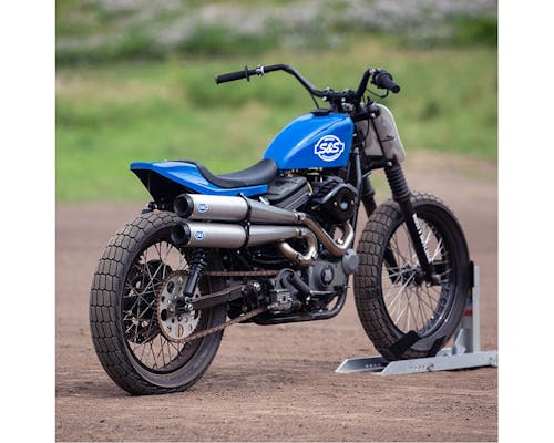 S&Sの最新作ティアドロップです。 オリジナルティアドロップのカバー同様に中央部の凹みにより エアクリーナー内部の空気の流れを整え効果的な吸気を実現しています。 アップマフラーであるS&S Hooligan 2-2フルエキゾースト装着車両は エアクリーナーとエキパイの干渉を避けられるこちらがオススメです。 |