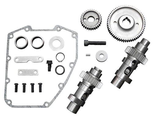 S&S製のギアドライブカムシャフトキットです。 ギアドライブはチェーンドライブに比べて、 大幅にフリクションロスが軽減し、レスポンスが向上します。 「イージースタートカム」は、クランキング始動時の負担を軽減する為の機構を搭載した ユニークなカムです。 セルスタート時はバルブの開く時間をコントロールして圧縮を抜く為 セルモーターに負担がかからず、今まで重かったクランキングも 驚くほど軽快に回るようになります。 エンジン始動後は通常のカムとして動作するようになっています。 MR103カムは広範囲のトルクカーブによりrpm全体の出力が向上します。 商品詳細ページ |