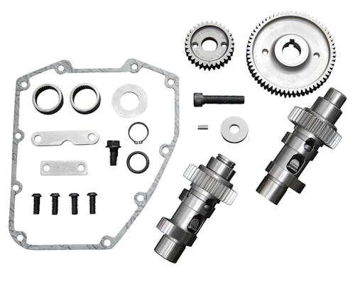 S&S製のギアドライブカムシャフトキットです。 ギアドライブはチェーンドライブに比べて、 大幅にフリクションロスが軽減し、レスポンスが向上します。 「イージースタートカム」はクランキング始動時の負担を軽減する為の機構を搭載した ユニークなカムです。 セルスタート時はバルブの開く時間をコントロールして圧縮を抜く為 セルモーターに負担がかからず、今まで重かったクランキングも 驚くほど軽快に回るようになります。 エンジン始動後は通常のカムとして動作するようになっています。 HP103カムは圧縮比9.7:1~10.5:1の103cuiエンジン向けで、 3000~6000回転で効果を発揮します。 商品詳細ページ |