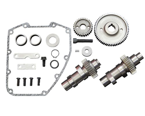 S&S製のギアドライブカムシャフトキットです。 ギアドライブはチェーンドライブに比べて摩擦の抵抗が少なく、 エンジンの回転がスムーズで正確になります。 95キュービックin以上で圧縮比は10.0~10.75:1を推奨しており、 3000~6000回転で効果を発揮します。 商品詳細ページ |