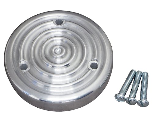 MALCOM SUPPRYのブルズアイキャブカバーです。 アルミの塊から削り出して、ハンドポリッシュしております。 裏面はS&Sエアクリーナーカバーと同様に、 吸気効率を上げるための円推状構造になっております。 取り付けマイナスボルト3本付きです。 1点1点、手仕上げの製品につき、 ポリッシュなどの表情・風合いの違いも含めて楽しんでいただける拘りの逸品です。 Made in Tokyo. |