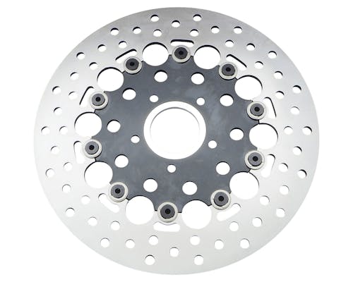 GTSのフローティングディスクローターです。 フローティングローターはリジット固定に比べ、 ロータに生じる車軸方向の応力が軽減されるため、熱変形が抑えられる他、 ハブやホイールに伝わる熱を軽減させるなど、メリットが豊富です。 レーザーカット加工で精密に仕上げられ、 軽量化のためインナーとコネクトピンはアルミが使われています。 |